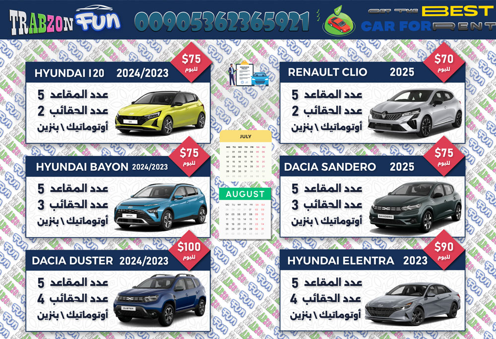 احدث عروض ايجار سيارات في طرابزون 2025 بأسعار منافسة وشروط سهلة