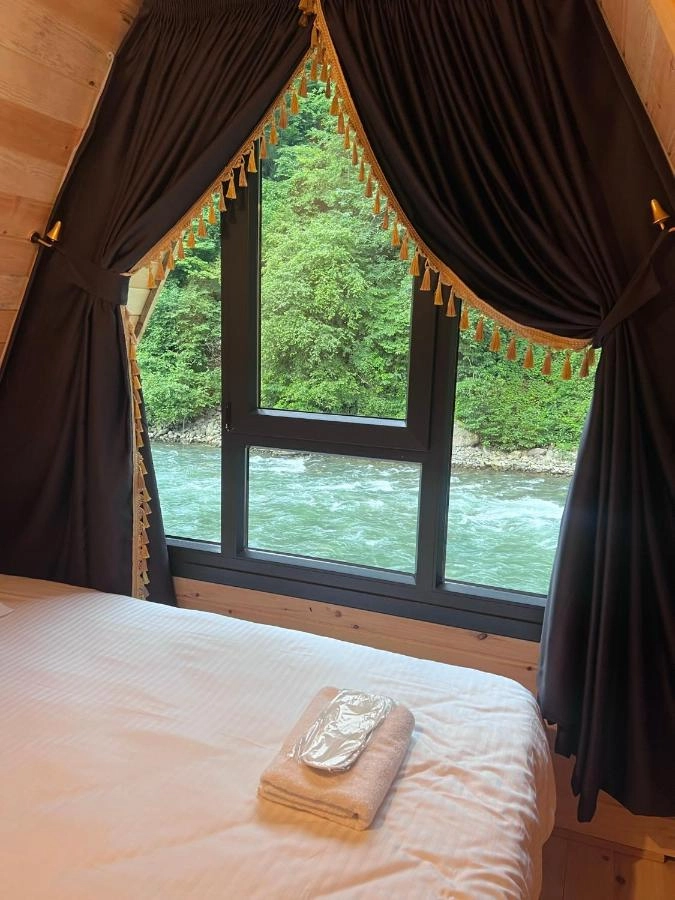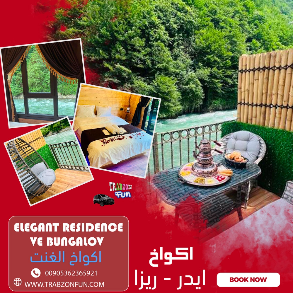 اكواخ الغنت ايدر Elegant Residence ve Bungalov اطلالة جميلة و العازل حتى صوت النهر ما تسمعه اذا كان مقفل الزجاج الفطور داخل الكوخ وغرف مطله في اكواخ اليجنت فندق و أكواخ Elegant في وادي الرياح يقع بين قرية آيدر و مدينة ريزا في الشمال التركي الفندق قريب من مركز المدينة و الاكواخ تطل على النهر مباشرة الاكواخ عبارة عن طابقين يتسع ل 6 اشخاص، الطابق الاول فيه جاكوزي و خصوصية تامة و الطابق الثاني سريرين مفردات