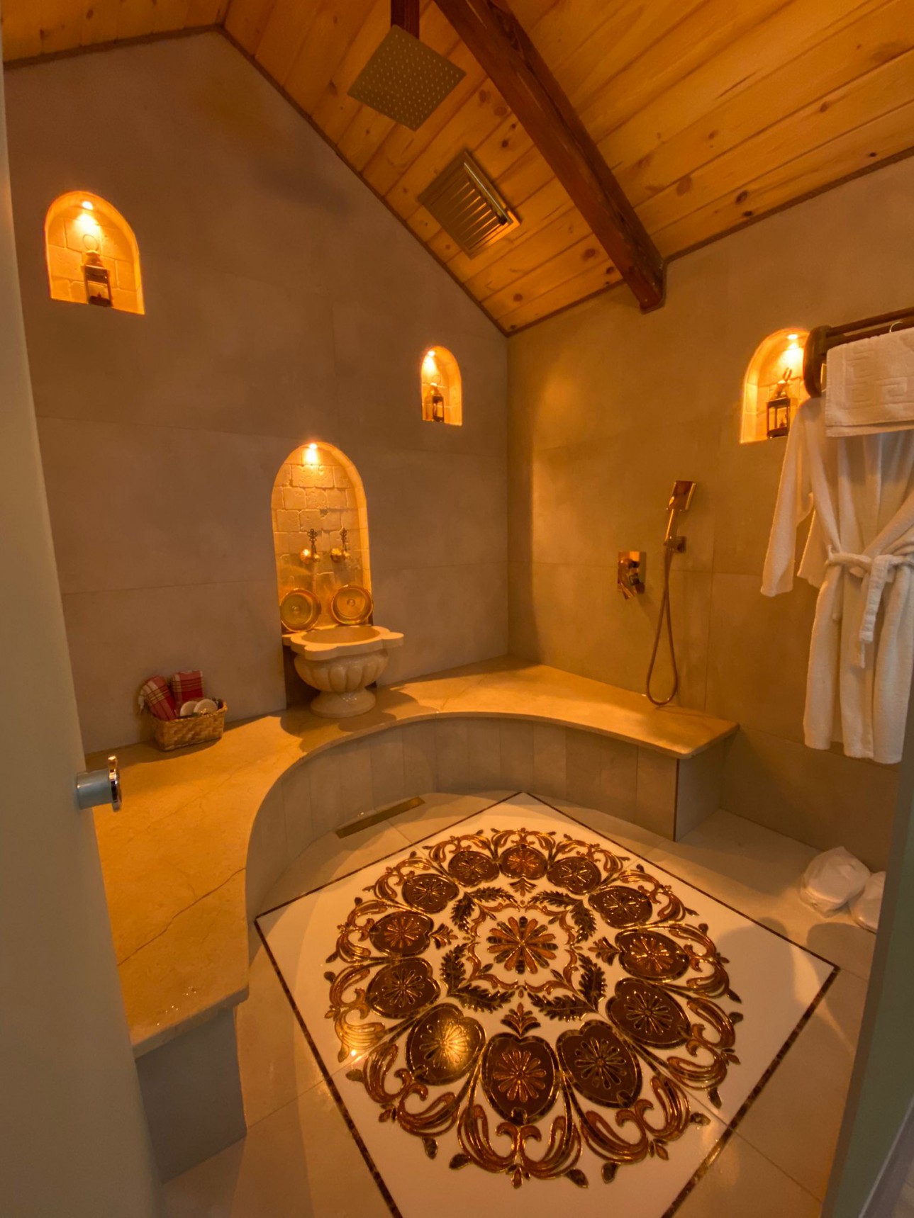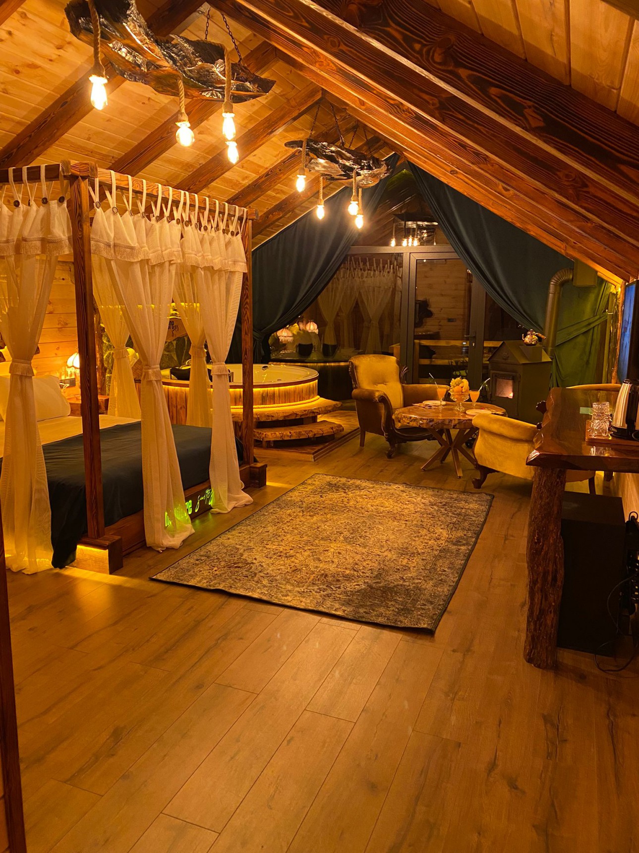 - ديكور خشبي دافئ وإضاءة رومانسية