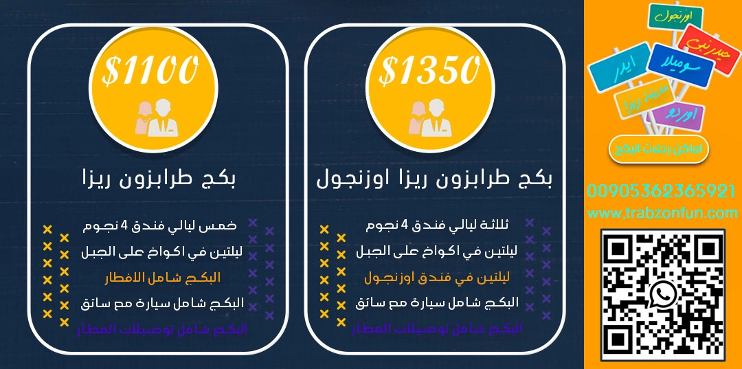 كالعادة نقدم لكم عروض شهر العسل في طرابزون و مناطق الشمال التركي من وكالة طرابزون أحجزالبكج من الآن وريح رأسك وبأسعار خاصة للبكجات في الجز المبكر مع خصم 5% وأغتنموا الفرصة